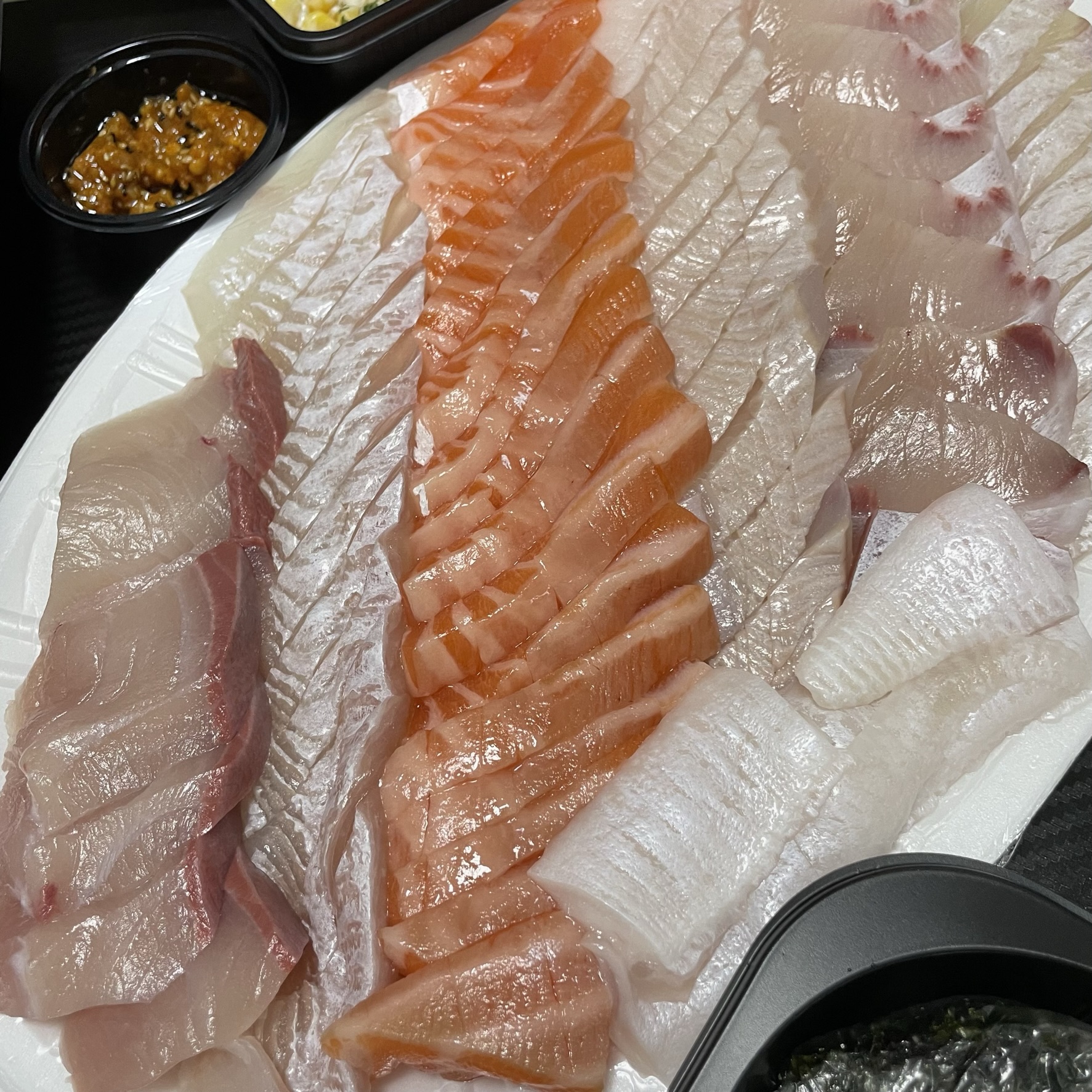 머리감고 나서 기념으로 회를 배달시켜 먹었습니다.