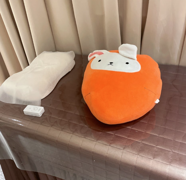 처음이라서 통증이.... 상당했습니다..^^ 왁싱 침대 위에 당근 토끼 쿠션이 있었는데 이게 왜있지? 싶었는데 이 쿠션이 없었다면 저는 중간에 뛰쳐나갔을 수도 있습니다..