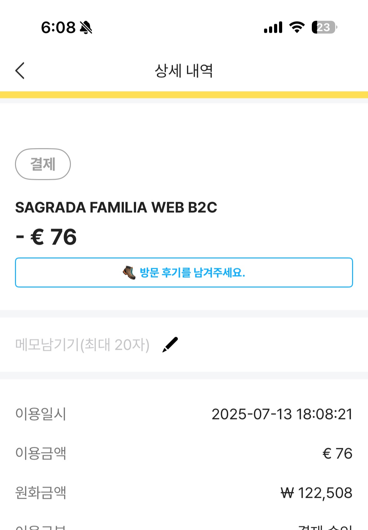 결제는 트레블월렛 카드에 충전해서 했어요!
