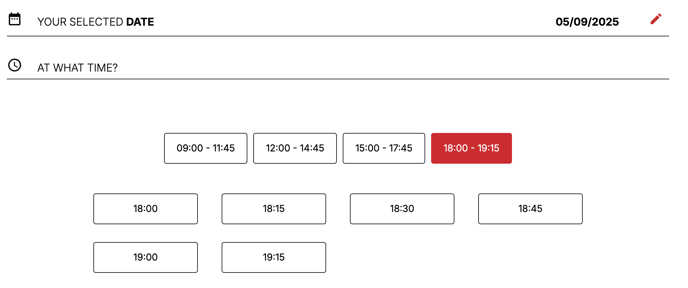 오전 9시부터 오후 5시 15분까지 15분 간격으로 예약이 가능해요