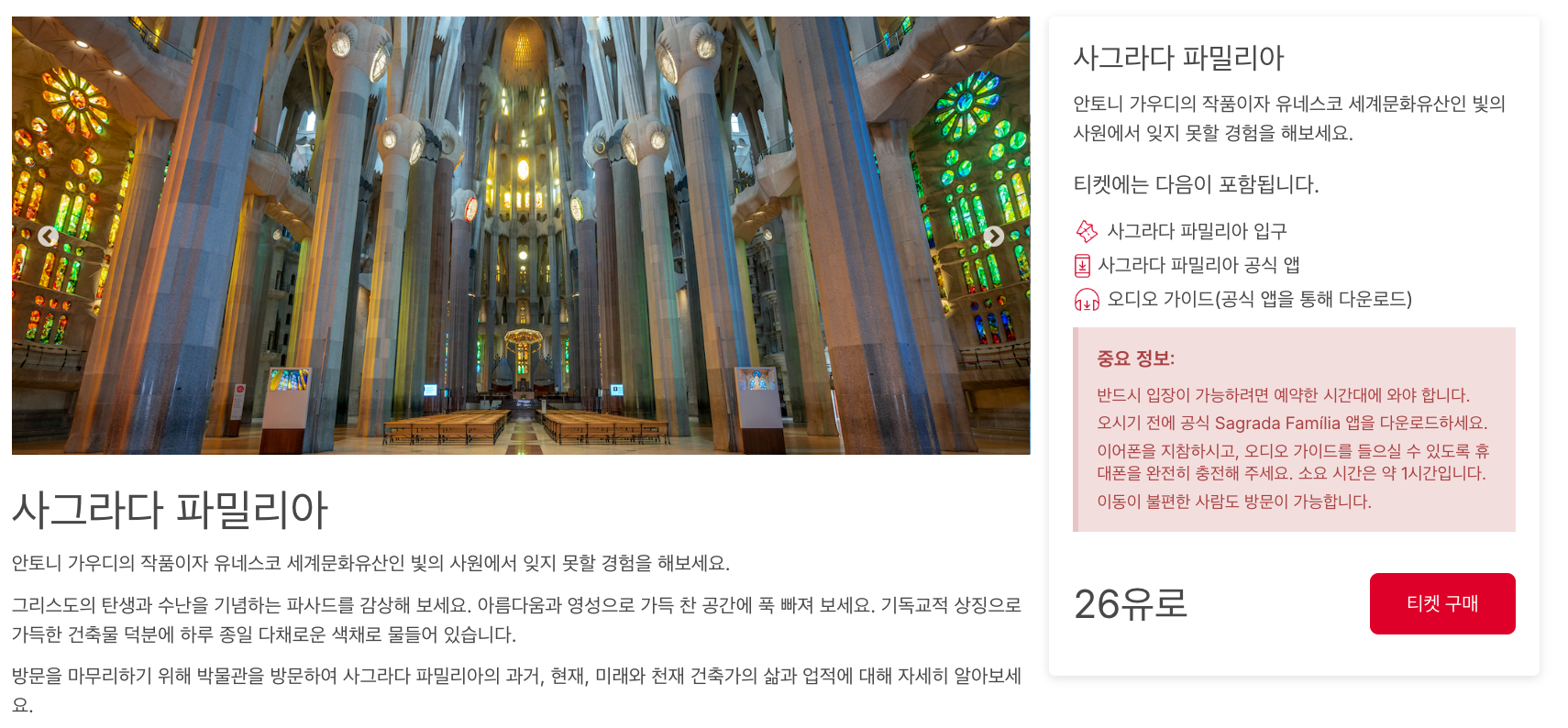 저는 사그라다 파밀리아 입장권만 구매해보았어요