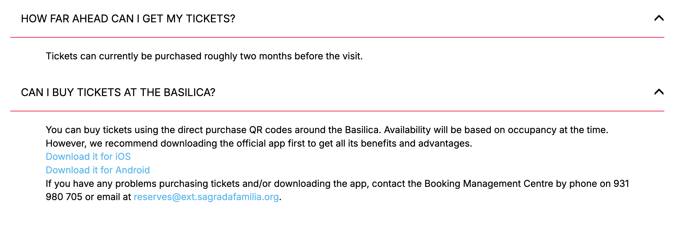 반드시 입장 예약 시간에 방문하고, 공식 Sagrada Familia 앱을 다운로드 하라고 하네요